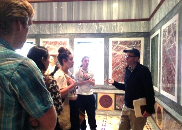 Robert Gurval talks to UCLA students at the Getty Villa in Malibu.