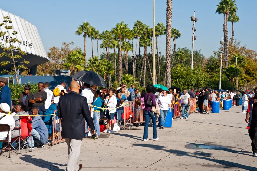 October 17, 2011: People without medical insurance wait in long lines that stretch around the block to see doctors at the Sports Arena in Los Angeles at a free medical clinic event.
