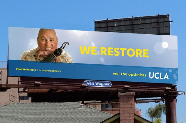 The brand campaign highlights programs such as Operation Mend, through which UCLA health care professionals perform reconstructive surgery for veterans who have been injured.