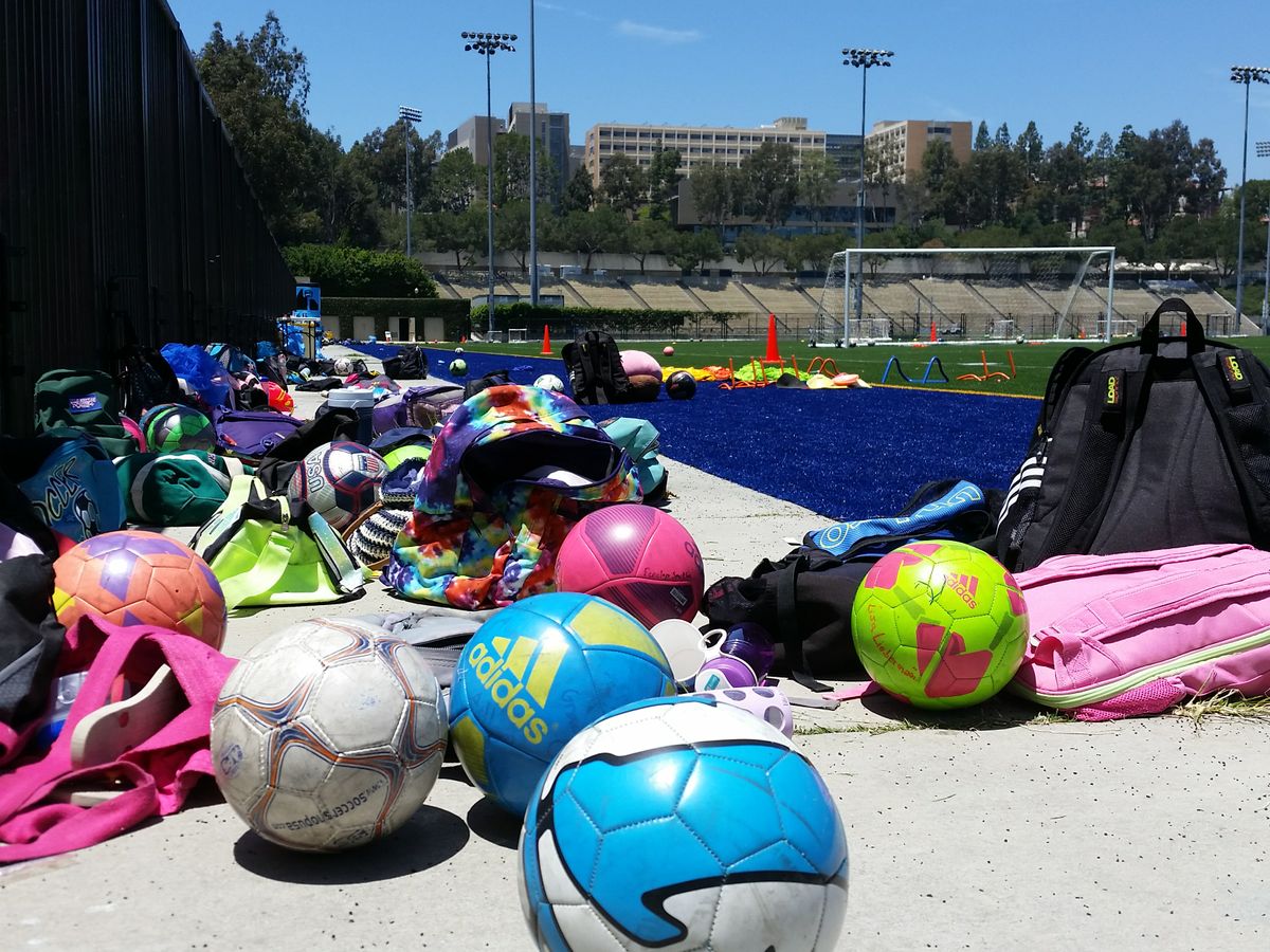 Balls wait to be tossed into action by youngsters attending one of the many athletic and recreation camps going on during the summer at UCLA.