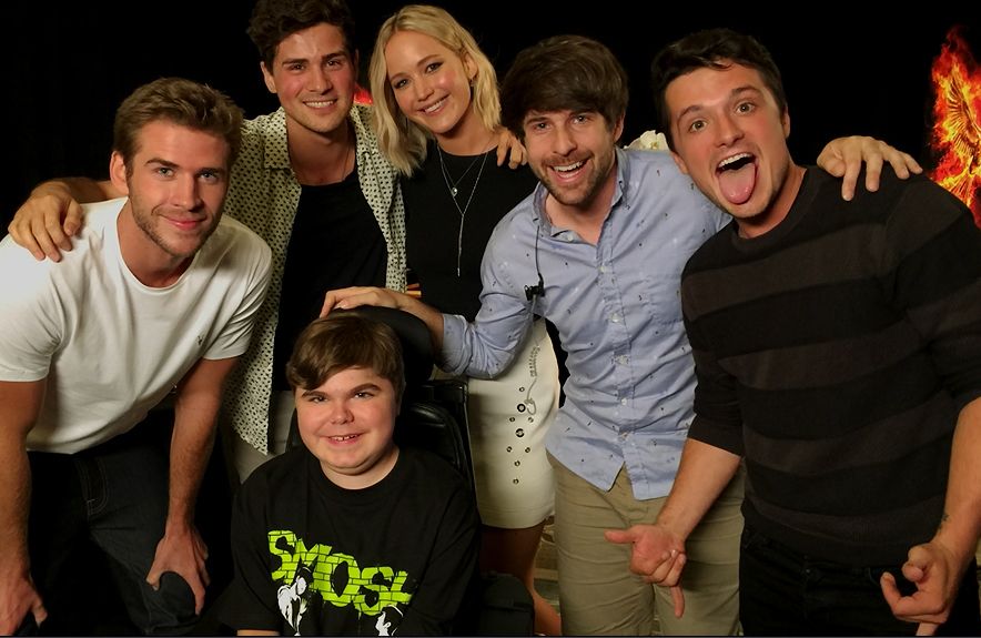 “Hunger Games” stars Jennifer Lawrence, Liam Hemsworth and Josh Hutcherson, 14-year-old Dylan Miceli-Nelson and the stars of SMOSH, Anthony Padilla and Ian Hecox.