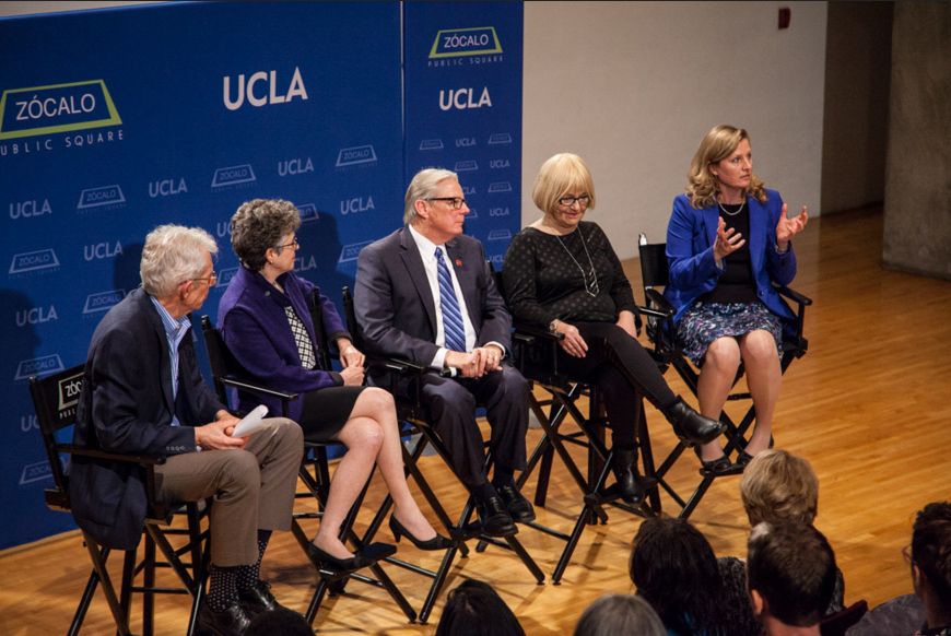 The Zócalo/UCLA event, “Does Medicine Know How to Approach Death?” featured John Fairhall, Katherine Brown-Saltzman, a registered nurse who directs the UCLA Health System Ethics Center, California State Senator Bill Monning, Dr. Susan Stone, and the Rev. Lori Koutouratsas, palliative care chaplain at the UCLA Medical Center in Santa Monica.