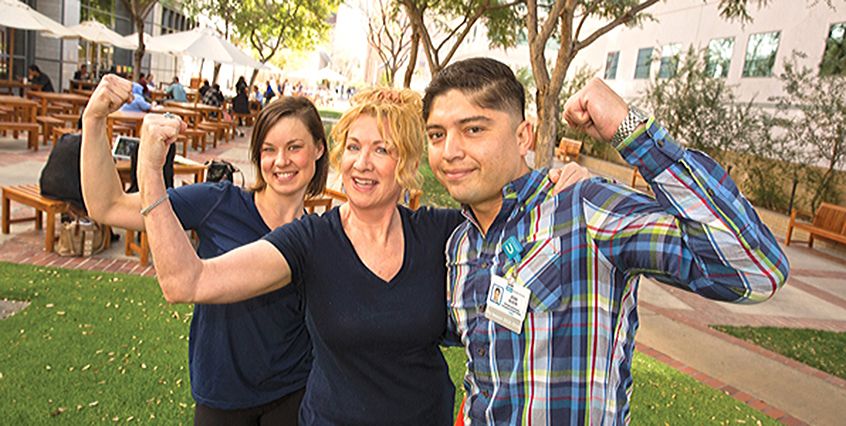 Left to right: Trudy Niess, WorkStrong personal trainer; Catherine Baker, a nurse at Resnick Neuropsychiatric Hospital at UCLA; and Jesse Olguin, WorkStrong program assistant.