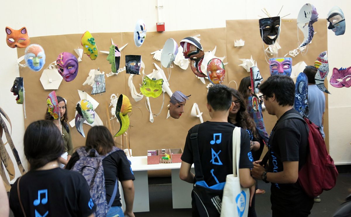 FORM Academy students view masks they created on the theme of "Dreaming Identity."