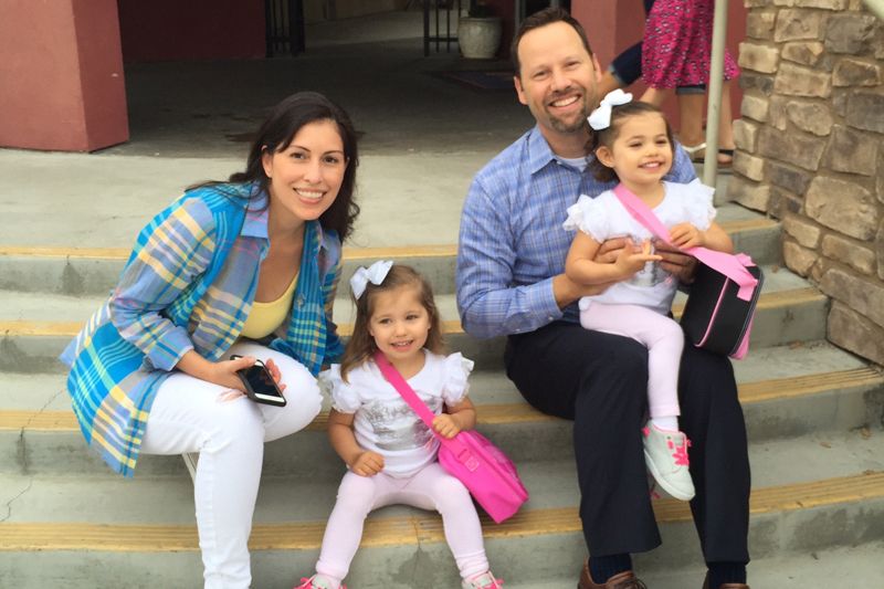 Evangelina Vaccaro (far right), who received treatment for bubble baby disease in 2012, enjoys a moment with her family before heading to her first day of school.