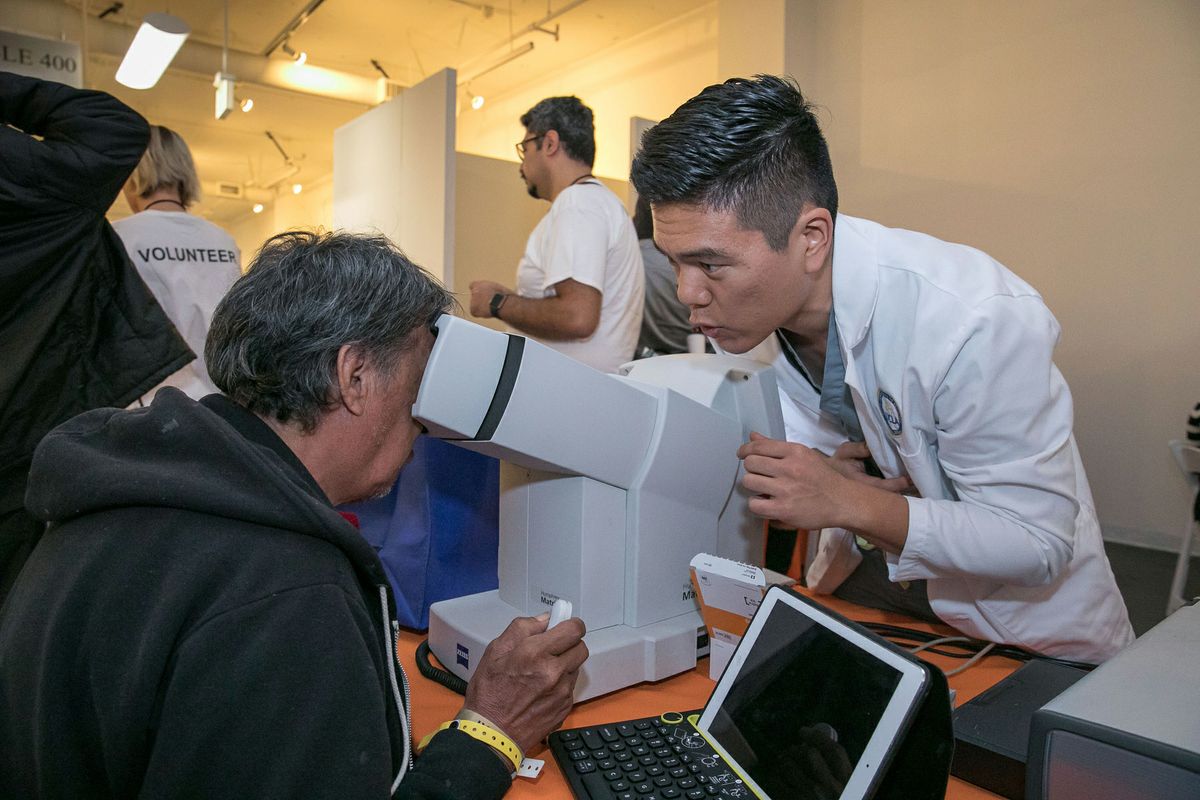 Ken Kitayama, a medical student from the David Geffen School of Medicine at UCLA, volunteers at a Care Harbor free clinic.