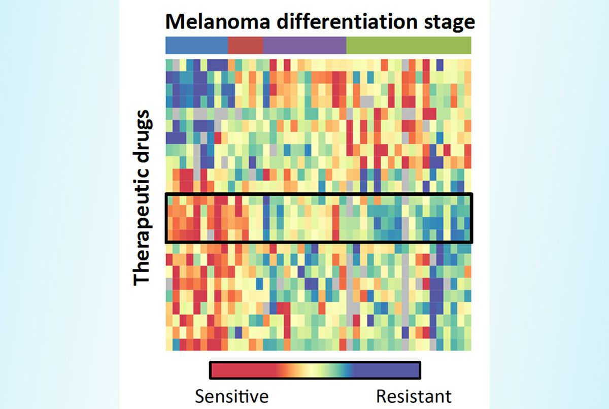 The integrated their melanoma four-stage differentiation framework with high-throughput drug sensitivity databases created by robotic screens to identify drugs that target resistant melanomas.