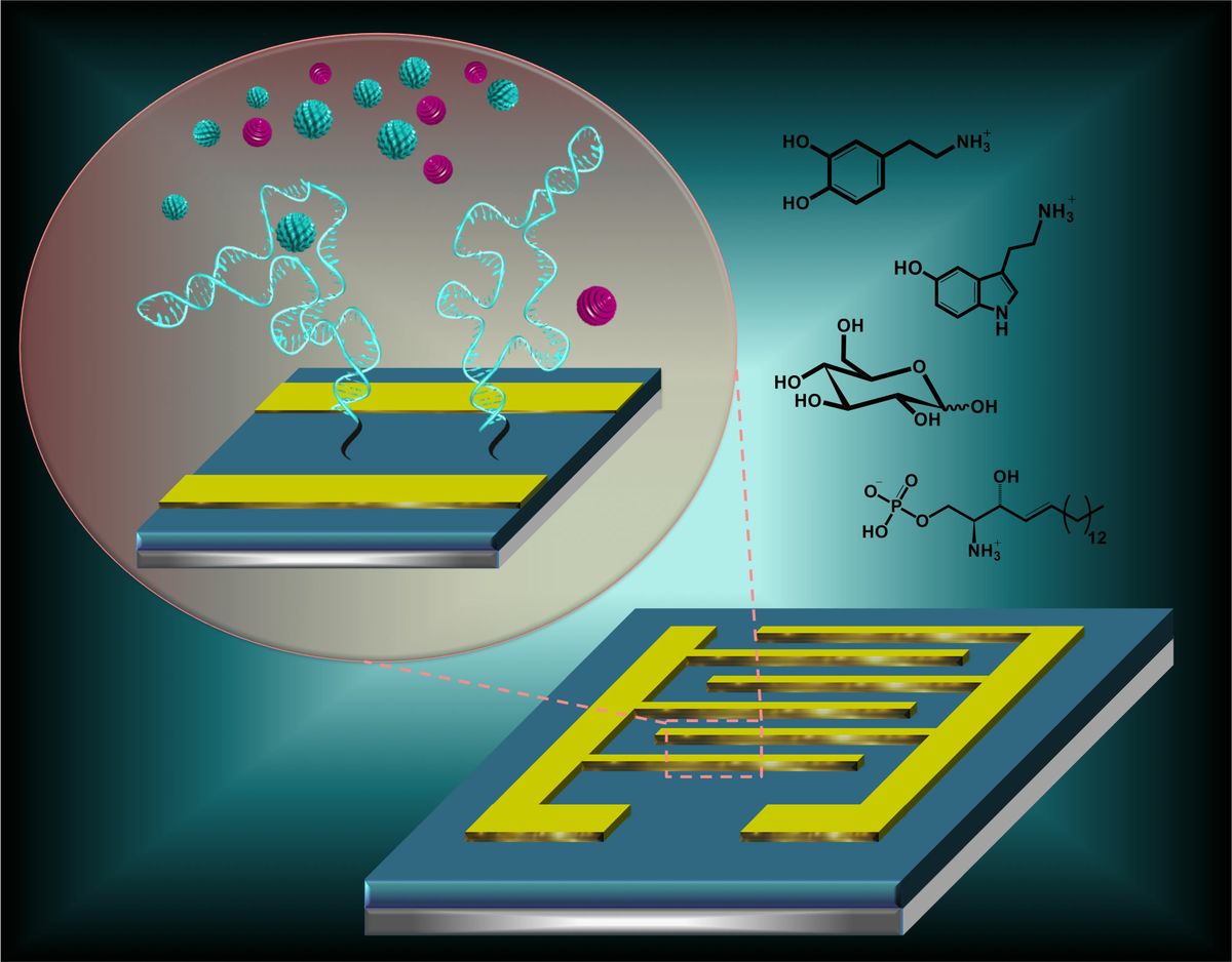 To detect neurotransmitters, compact, artificial receptors are attached to transistor sensors. When a receptor binds a neurotransmitter molecule, the receptor shape changes, which produces an electronic response that can be monitored in the brain.
