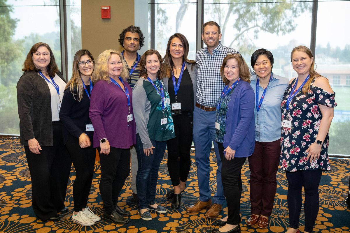 Haley and Tyler Bacon surrounded by eight of the 26 people whose blood and platelet donations preserved his life during cancer treatment at UCLA.