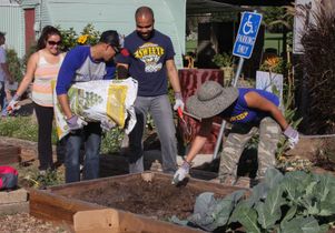 About 60 UCLA staff members from Residential Life spent their St. Patrick's Day visiting the Veterans Affairs West Los Angeles Medical Center on Tuesday to lend a hand with gardening and several other projects