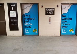 If you park in UCLA Parking Structure 4, 7 or 8, you may have noticed the elevator doors urging you to take the stairs, a clever message from UCLA Transportation.