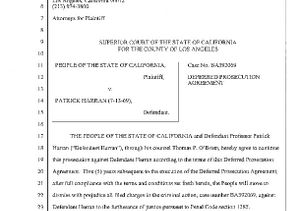 The agreement between Patrick Harran and the Los Angeles County DA will result in a dismissal of all charges in connection with a campus lab accident that took the life of a staff research associate.