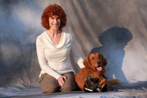 UCLA staff member Kathy Wyer and Elodie Lorenz, a fellow volunteer with the Golden Retriever Club of Greater Los Angeles Rescue, take care of Roofus, a dog who was born blind and with foreshortened front legs.