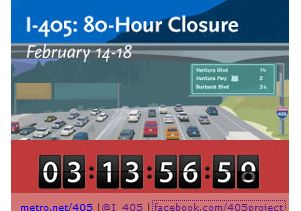 Los Angeles transportation officials are alerting I-405 and regional freeway motorists of an 80-hour northbound I-405 freeway closure operation in the Sepulveda Pass this Presidents' Day weekend, Feb. 14 to 18.