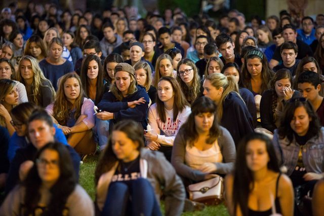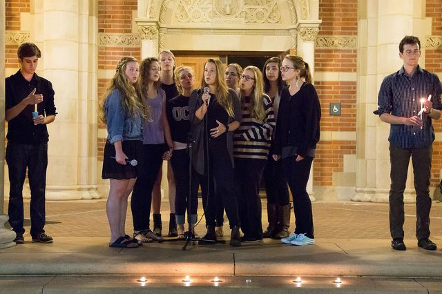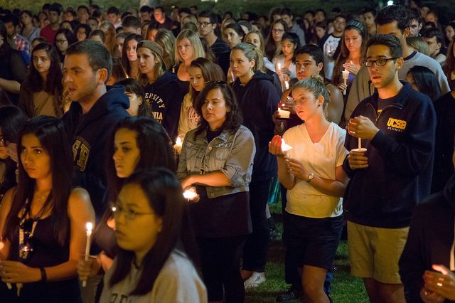 After the killings of six UC Santa Barbara students in Isla Vista, students at UCLA used social media to organize a memorial vigil outside Royce Hall. The Monday night gathering drew several hundred students, staff and UCLA community members, several of them sporting UCSB wear.
