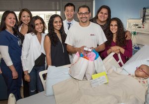 Dr. Julie Kang, a resident in the Department of Radiation Oncology, was able to connect the teens with the Mezquita family through a mutual friend. Kang was there when the check and gifts were presented to the family, along with Vicky’s radiation oncologist, Dr. Percy Lee, who oversaw the radiation treatments, and nurse Adriana Grandpre-Aguiar, who assisted with her care.